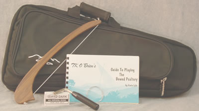 Available with Alder, Butternut, Spruce or Walnut top. The pinblocks are hard Maple. Siderails are solid Walnut. Walnut bridge with metal rail. Celtic Knot soundhole. Black dots identify the C notes. The 24 string is 18" long; the 30 string is 22" long. The baritone bowed psaltery is a 30 string model with 2 plus octaves and a range of F to A above middle C. Excellent sound in a manageable size. BP-30-B 30 string Available with Alder, Butternut, Spruce or Walnut top. The pinblocks are hard Maple. Siderails are solid Walnut. Walnut bridge with metal rail. Celtic Knot soundhole. Black dots identify the C notes. 25 inches long, 8 1/2 inches wide at the base, 4 1/2 pounds. Psaltery Package |
